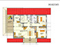 verfügt über zwei Schlafräume ,ein großer Wohnraum mit Essecke und Ausziehcouch sowie Kaminofen und Einbauküche , DU und 2 WC's, Abstellraum, ein Balkon sowie eine 26 m² Dachterrasse mit Panoramablick über die Alpen.